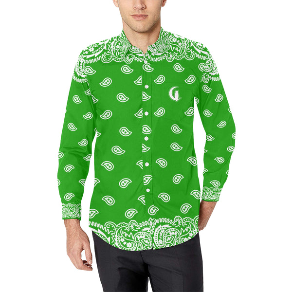 M / BANDANA FULLY GREEN Men's All Over Print Casual Dress Shirt (Model T61) - €44,50 EUR