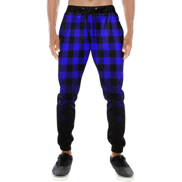 DUSTY PLAID BLUE Men's All Over Print Sweatpants (Model L11)