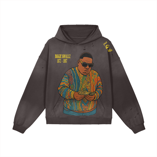 This 100% cotton hoodie pairs a sun-faded wash with distressed detailing to capture authentic vintage streetwear energy. Oversized proportions and grunge-inspired touches make it ideal for layering or wearing as a bold statement piece, blending comfort, casual ease, and standout appeal in modern everyday fashion.