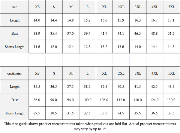 This size guide shows product measurements taken when products are laid flat. Actual product measurements may vary by up to 1".