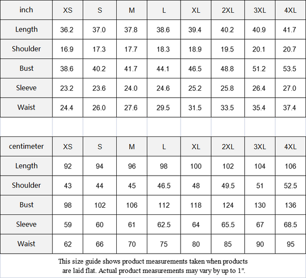 This size guide shows product measurements taken when products are laid flat. Actual product measurements may vary by up to 1".