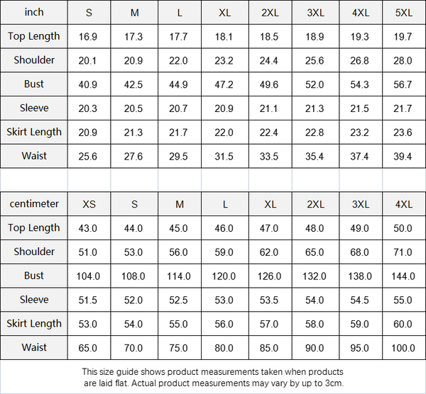 This size guide shows product measurements taken when products are laid flat. Actual product measurements may vary by up to 3cm.