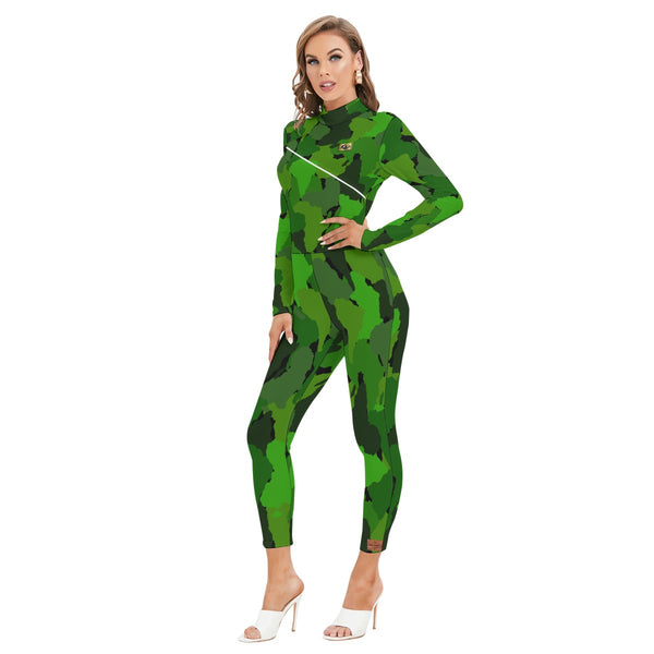 DIASPO CAMOU GREEN Women's Long-sleeved Jumpsuit