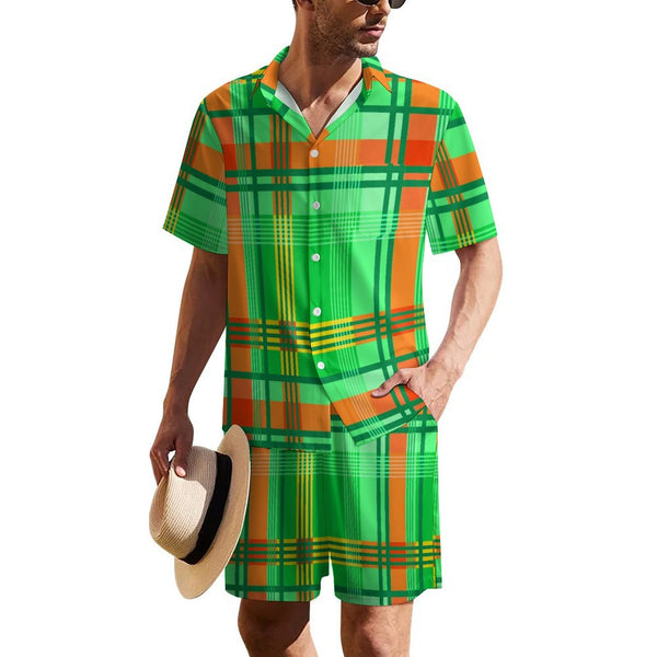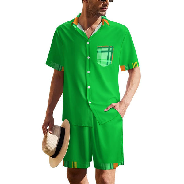 MADRAS GREEN 1 Men's Collared Short Sleeve Shirt Set