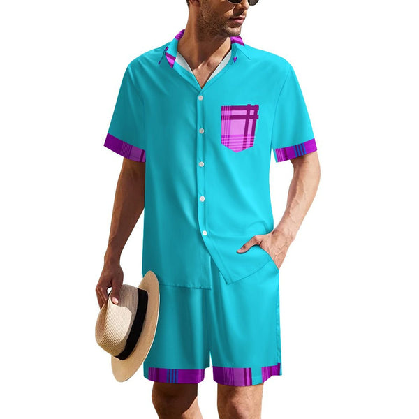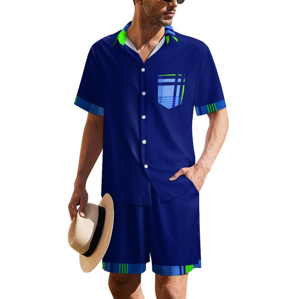 MADRAS BLUE1 Men's Collared Short Sleeve Shirt Set