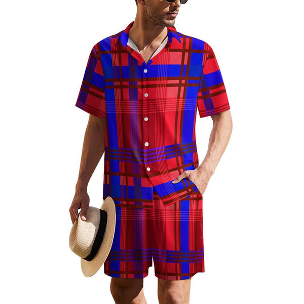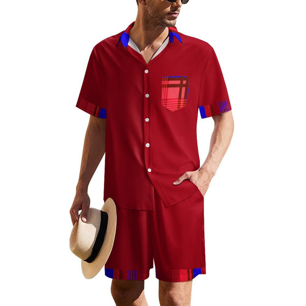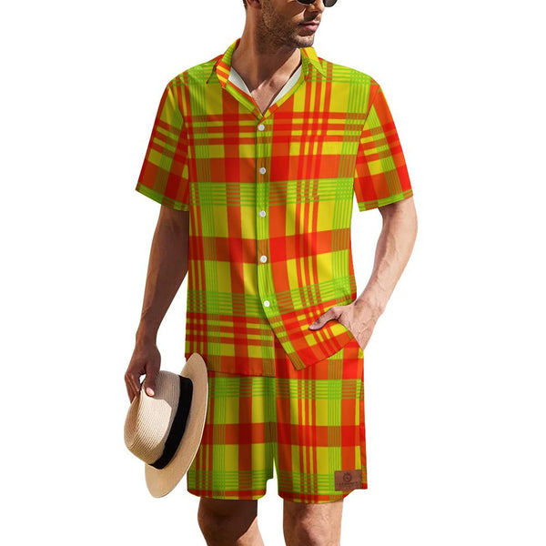 MADRAS RED1 Men's Collared Short Sleeve Shirt Set